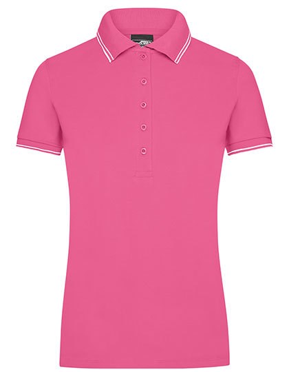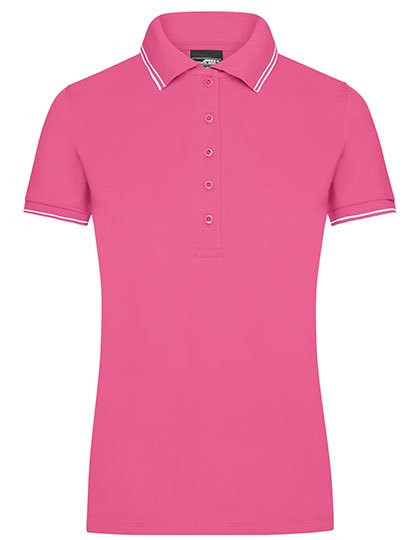 Polo in elastische piqué stof | Gekamde ringgesponnen katoen | Gebreide polokraag en mouwbanden met contrasterende strepen | Contrasterende zijsplitten | 5 knopen | Getailleerde pasvorm