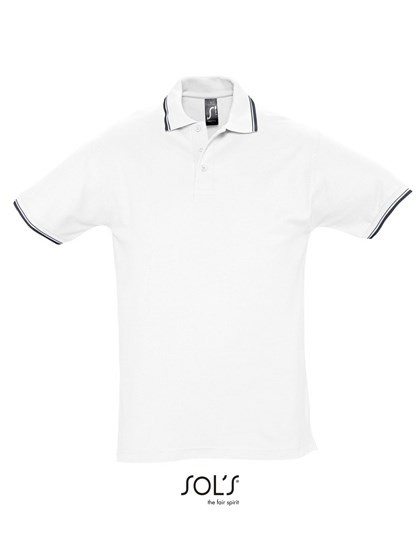 Gekamde ringgesponnen katoen | Contrasterende gestreepte kraag en onderkant van de mouwen | Toon-tot-toon 3-knopenlijst | Rechte zoom met contrasterende zijsplitten | Versterkte nekband | Rib aan kraag en onderkant van de mouwen | Piqué, gesneden en genaaid