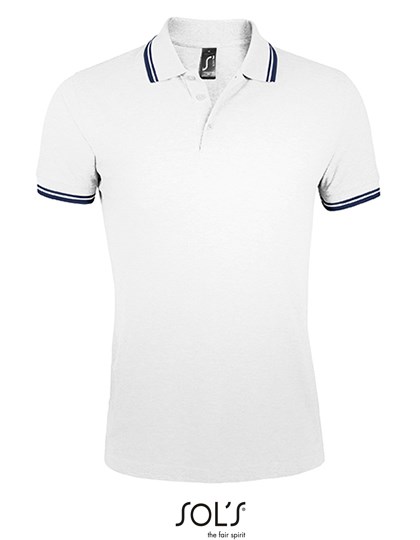 100% ringgesponnen katoen | Rib 1x1 kraag en manchetten | Versterkingstape bij de halslijn | Korte mouwen | Contrasterende gestreepte kraag en manchetten | Ton-sur-ton 3-knopenlijst | Passend model | Gesneden en genaaid | Zijsplitten | Reserve knoop aan de binnenkant van de naad