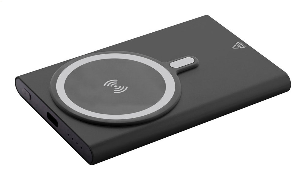 Powerbank van gerecycled aluminium met ingebouwde magnetische draadloze snellader (15 W) en 5000...meer